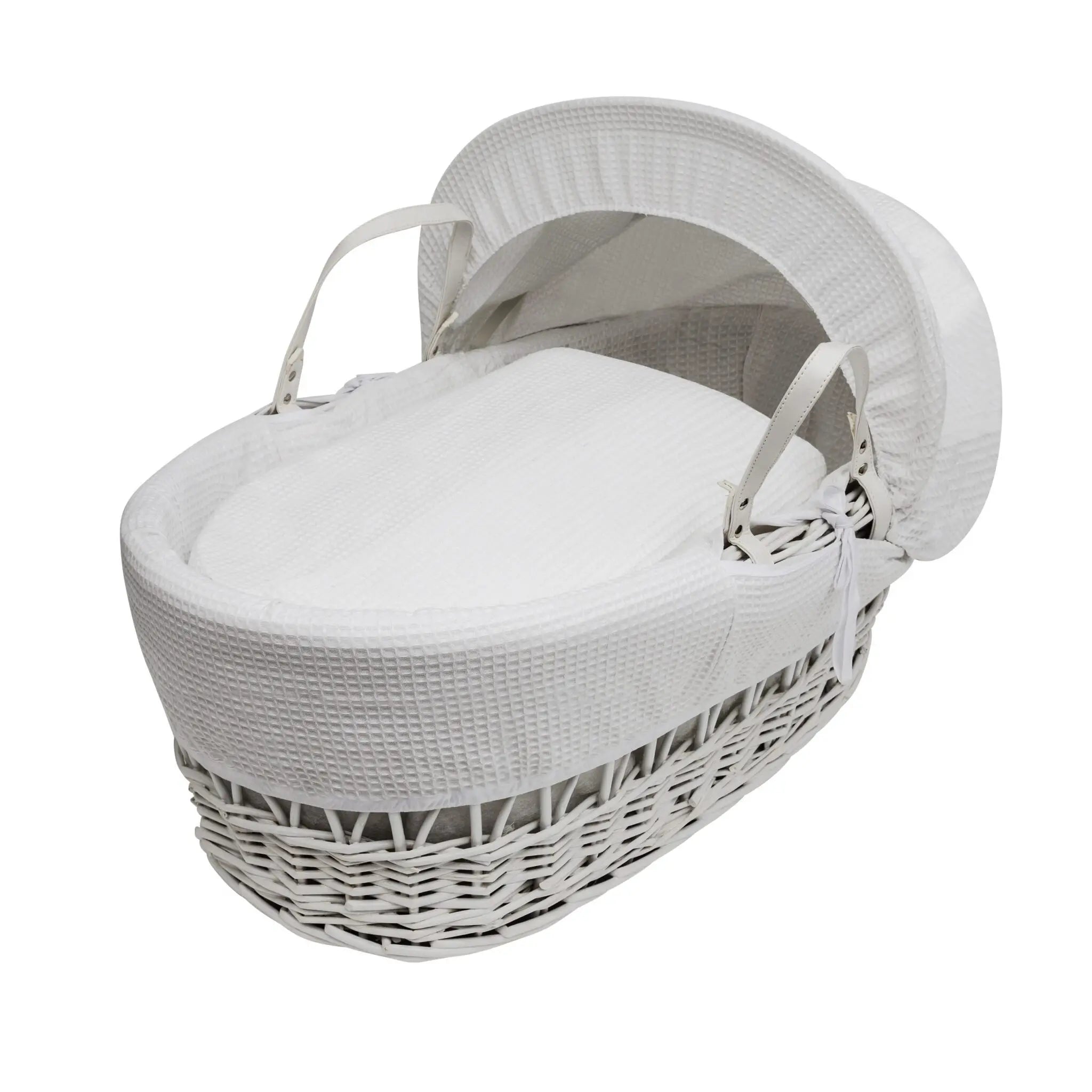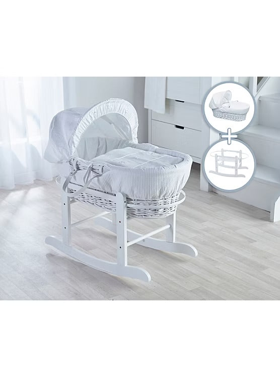 KV White Waffle White Wicker Moses Basket With White Rocking Stand